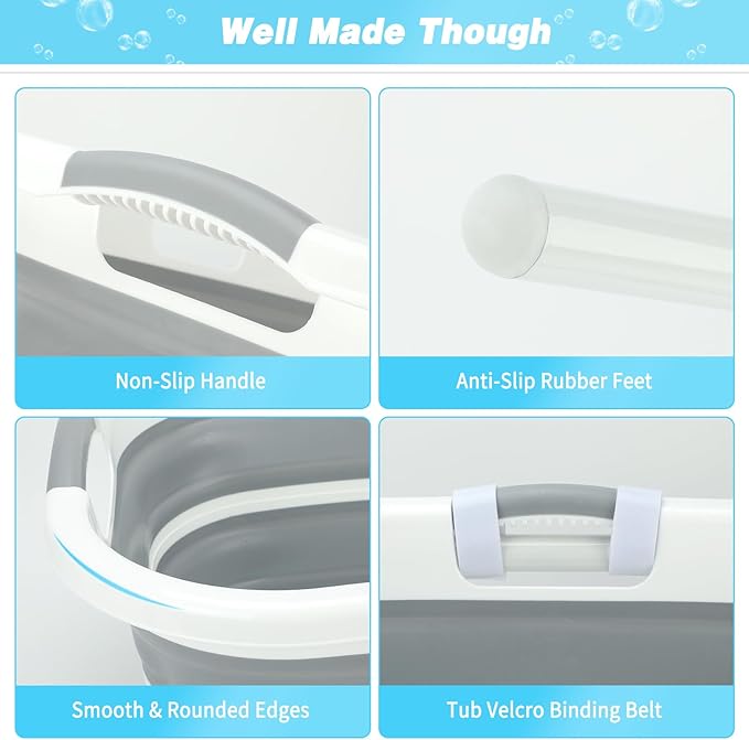 - Multifunctional Pet Shower Bathtub: Except as a bath tub, so many uses for this convenient foldable dog pet bath tub: Can also be used for soaking feet, washing clothes, shoes, and other articles, as well as large storage organizer to store all kinds of household products; Also as ice container, water bucket; Whether you are fishing, camping, hiking, picnics or RV trip, a portable multifunctional tub can be a great hauling tool
