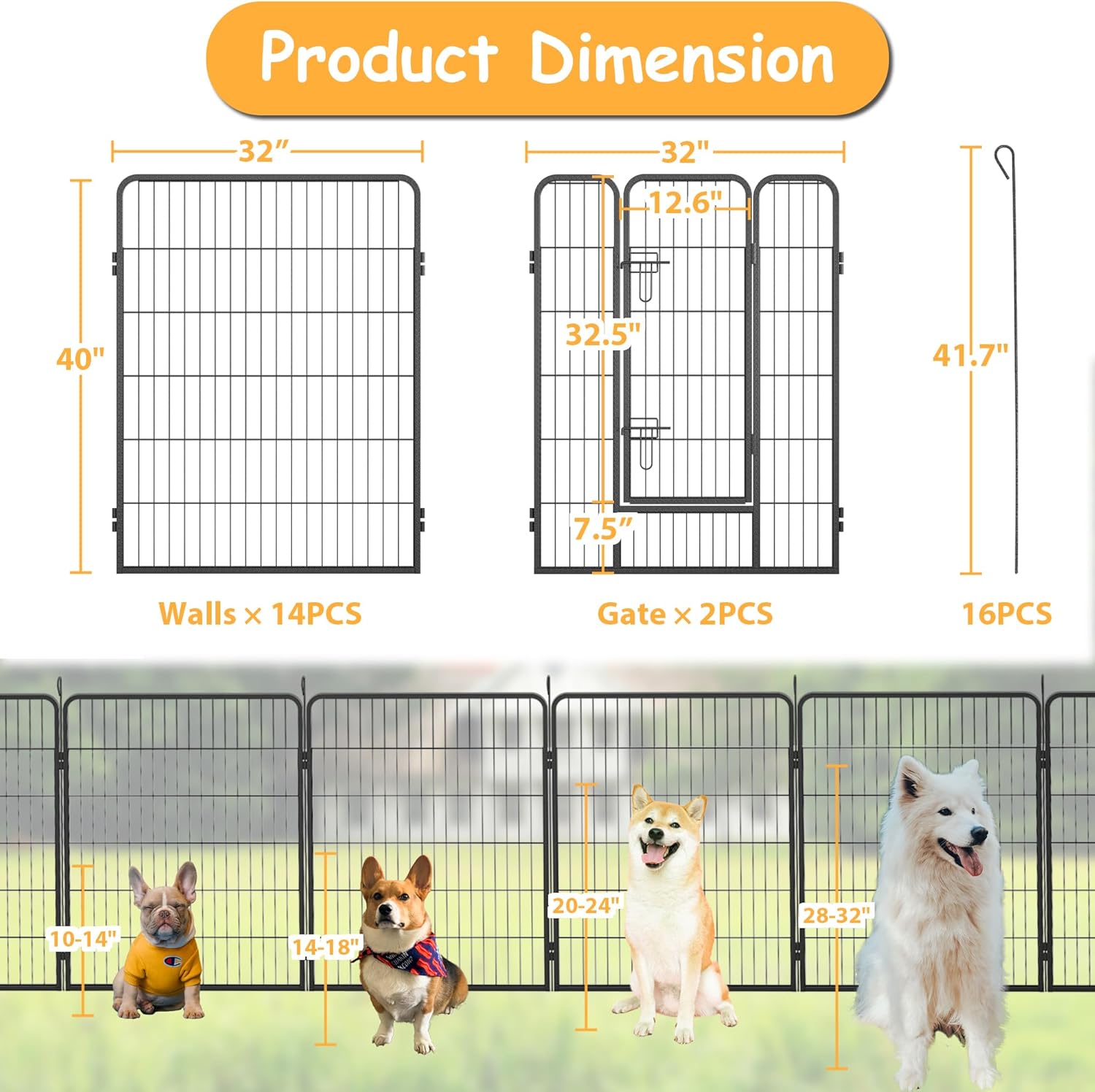Dog Playpen, Outdoor Dog Fence, 16 Panels, 40" H Dog Pen for Medium/Small Dogs, Heavy Duty Metal Pet Fence with Gate, Portable Dog Fence for RV Camping and Yard (Black)