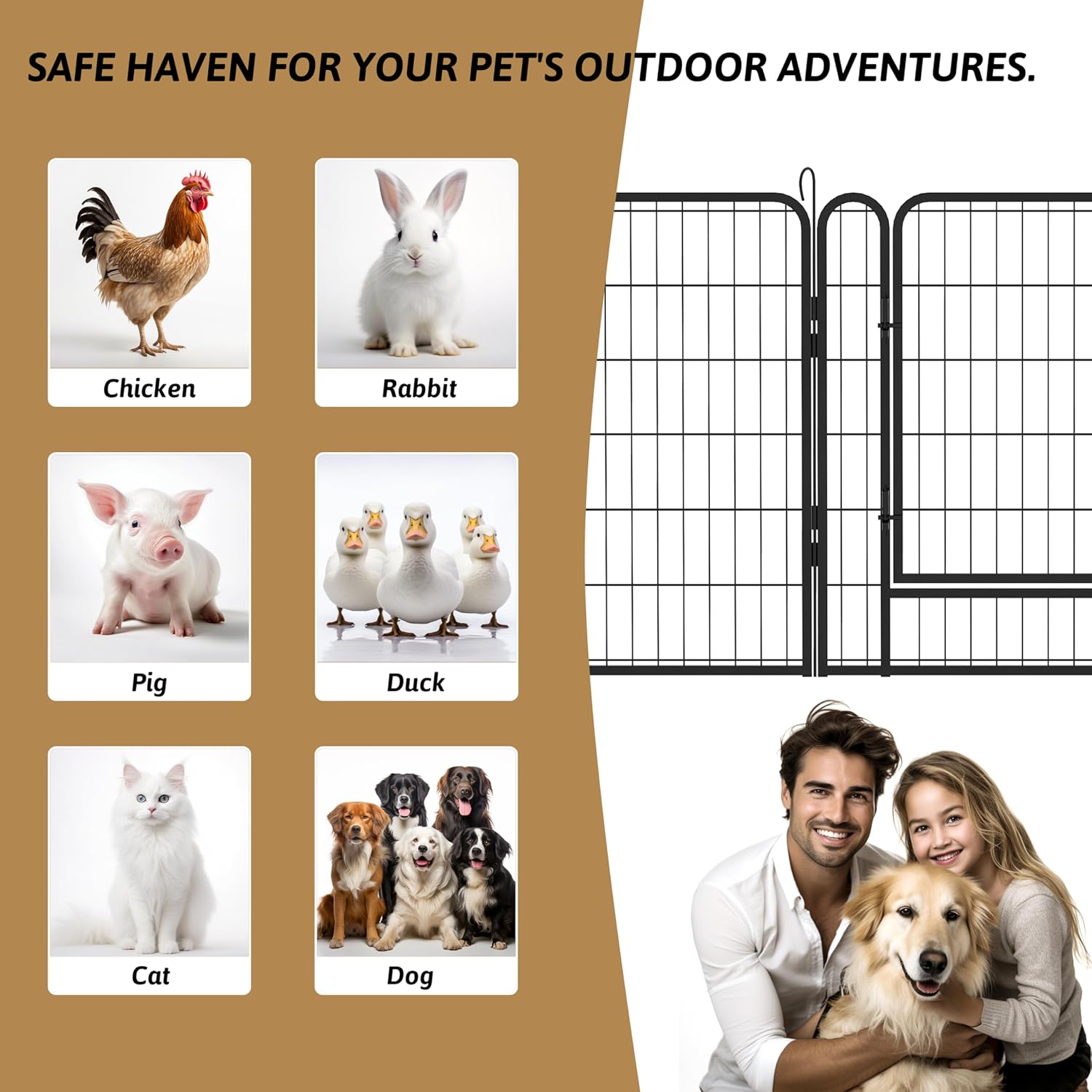- ๐ถ๐ฉ๐ฒ๐ฟ๐๐ฎ๐๐ถ๐น๐ฒ ๐ฆ๐ต๐ฎ๐ฝ๐ฒ ๐ข๐ฝ๐๐ถ๐ผ๐ป๐:Our outdoor dog fence panels are 28'' wide and 40'' high, including 6 panels and 1 gate, allowing you to set it up in various shapes like circles or rectangles to suit your space and your pet's needs. This tall dog playpen is ideal for small, medium, and large animals, and the 40'' height ensures their safety