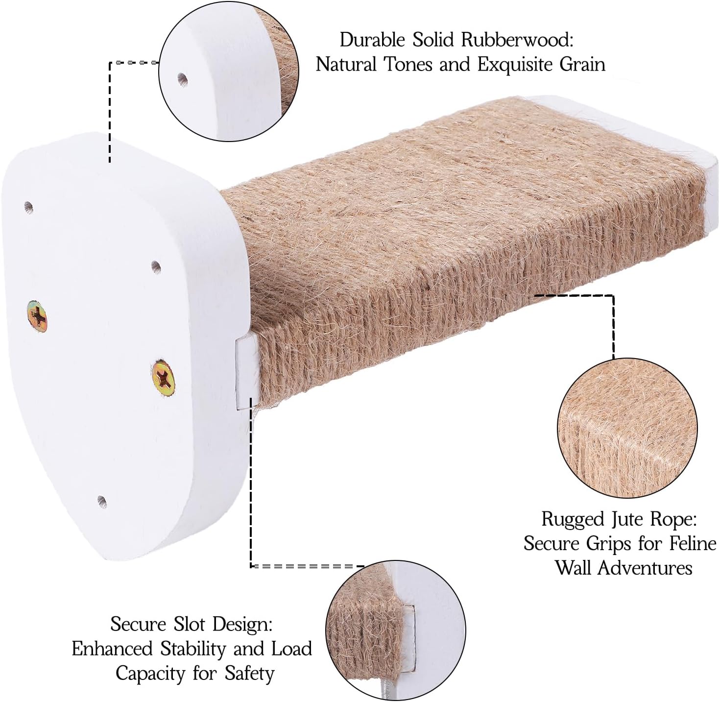 - 【Multifunctional cat wall furniture】This 3-piece set of cat wall steps is made of natural rubber wood, which is strong and stable. It not only meets the needs of cats for climbing and playing, but also, with its unique sisal rope covering design, provides an ideal scratching experience for cats. Whether used as an independent cat wall furniture or matched with other cat wall accessories, it can create a perfect activity space for your beloved cat.
