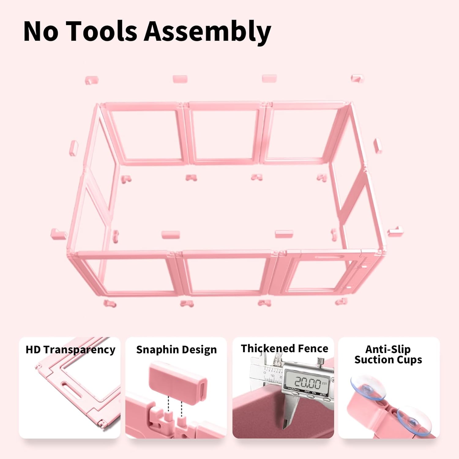 DIY Clear Acrylic Dog Playpen House,Quick Easy Assembly and Disassembly,Strong Floor Suction,Indoor and Outdoor Use,Easy Cleansing Puppy Fence (Sakura Pink, 23.6" H, 10PCS)
