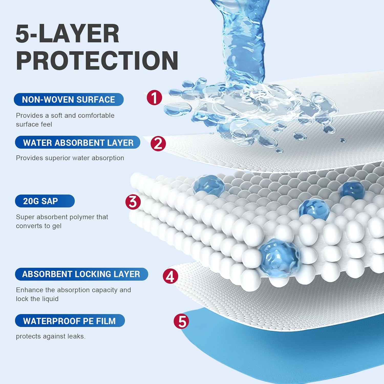 - SUPER SIZE: The extra large 100*152 cm disposable bed pads can fit anywhere The disposable underpads pads can be spread horizontally over a double bed, vertically over a single bed and sofa, and can be used by multiple people or all day long
