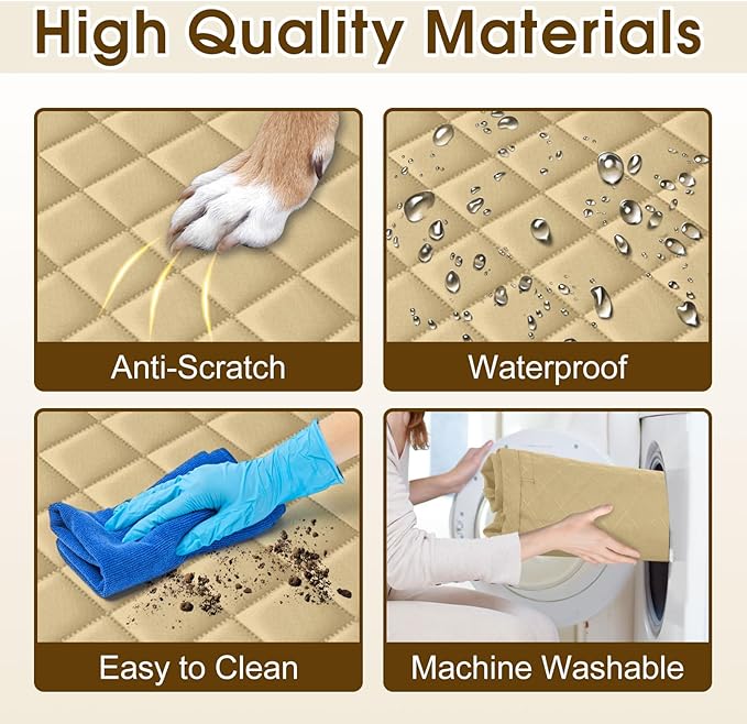 Waterproof Dog Car Seat Cover for Back Seat - Durable, Scratch Proof Pet Hammock with Nonslip Design & Storage Pockets, Fits Cars, SUVs, Trucks - L, Khaki/Black