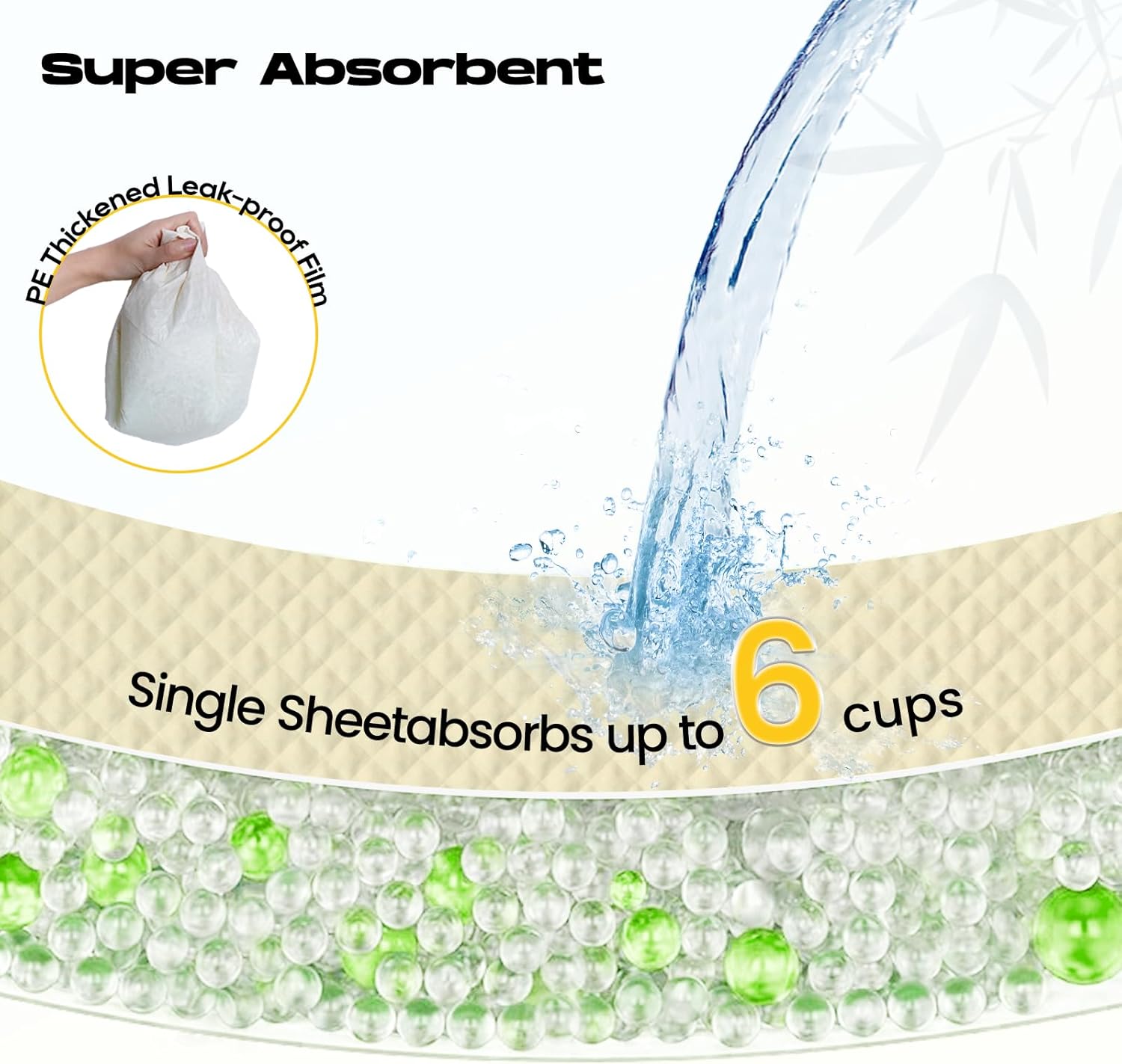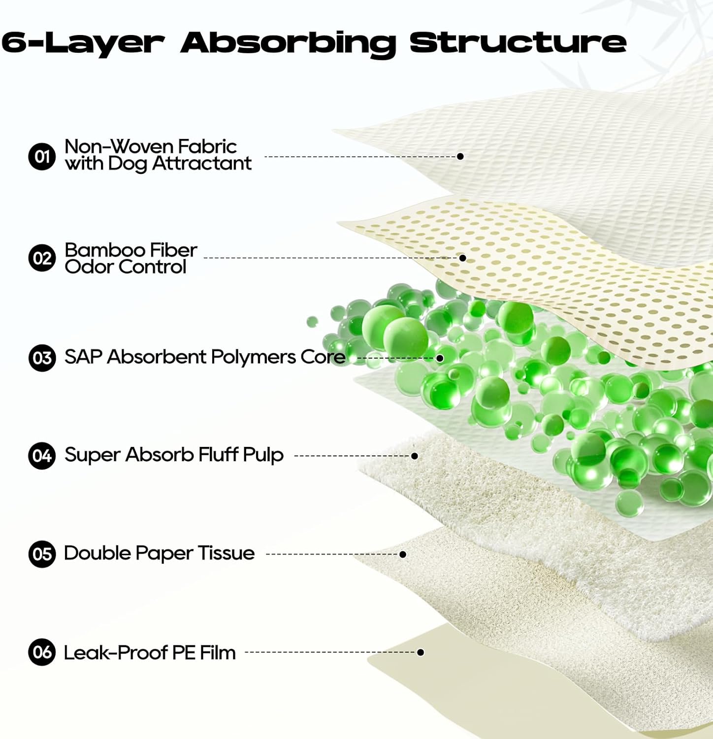- 🦴【Super Absorbent & Quick Drying】6 layers of protection designed with polymers for super absorbency,converting liquid to gel in seconds for easy cleanup and staying dry.The non-woven fabric of the diaper pads accelerates liquid absorption and prevents reverse osmosis,keeping the surface dry quickly