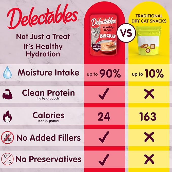 Hartz Delectables Lickable Treat Bisque Kitten Wet Cat Treat with Real Tuna & Salmon, Complete & Balanced, Hydrating, Grain-Free, No Fillers, No by-Products, No Added Preservatives, 1.4oz Pouch, 12ct