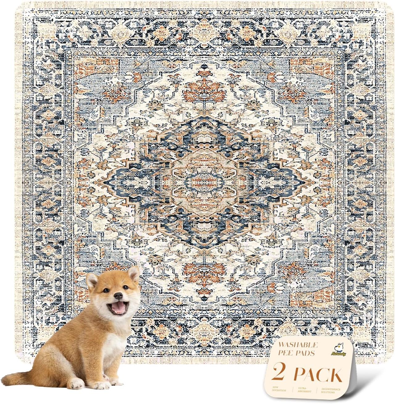 nunubaby Washable Pee Pads for Dogs, Stylish, Non-Slip and Leak-Proof Pee Pads. Reusable Potty Pads for Dogs for Crates and Floors.(Beige/Multi, 36" x36" )