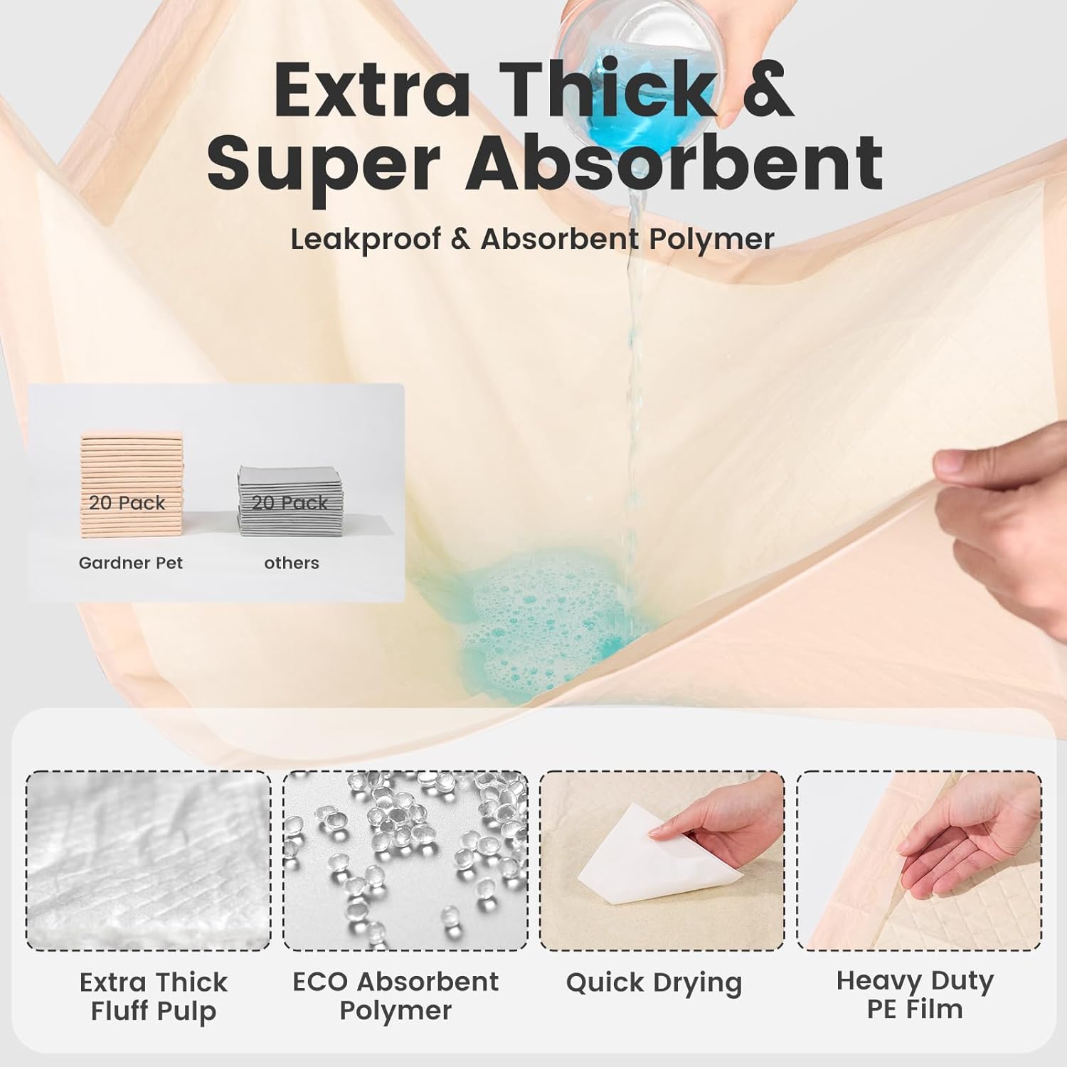 Gardner Pet Disposable Puppy Pads XL, 28"x34" Super Absorbent & Leak-Proof Full Edge-Wrapping Dog Training Pads, Extra Thick Potty Pads, 50 Count