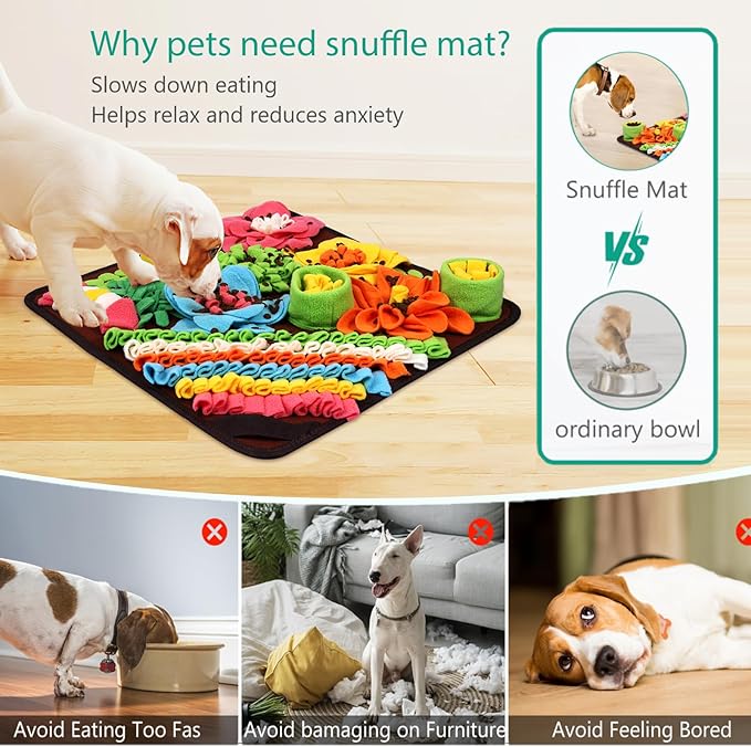 - Effectively Slow Down Dog's Eating: The dog snuffle mat is engineered to slow down eating by increasing the time your dog spends searching for treats, preventing overeating and potential weight gain. This feature is especially beneficial for dogs that eat too quickly.