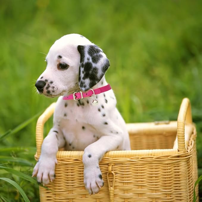 - 【Material】 Dog collar with bell, it with soft PU material, metal buckle, Cute and comfortable, easy to wear, durable, will not let pets escape, can be used for a long time.
