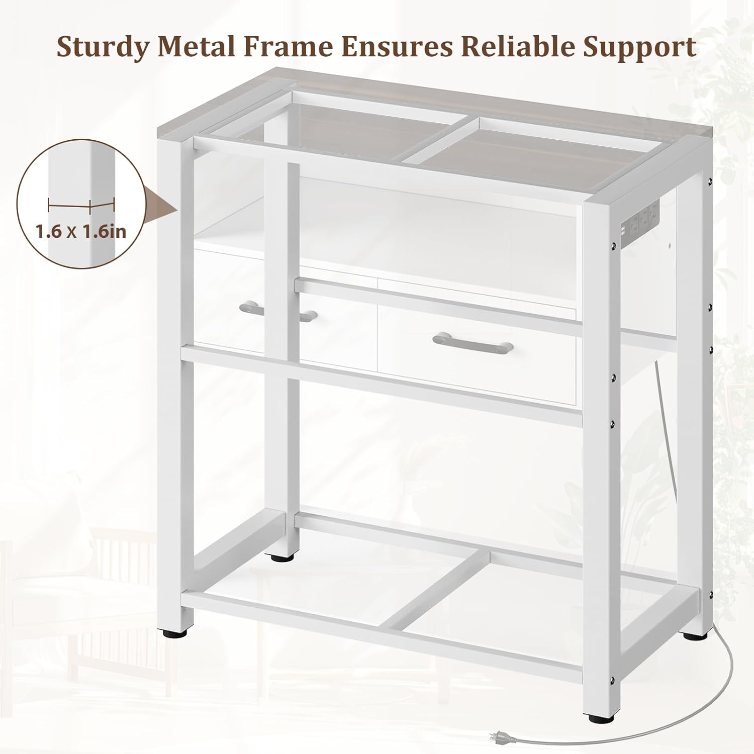 20-29 Gallon Aquarium Stand with Stable Metal Frame & Power Outlet, Heavy-Duty Fish Tank Stand with Waterproof Mat, 550LBS Capacity Storage Cabinet, White+Brown