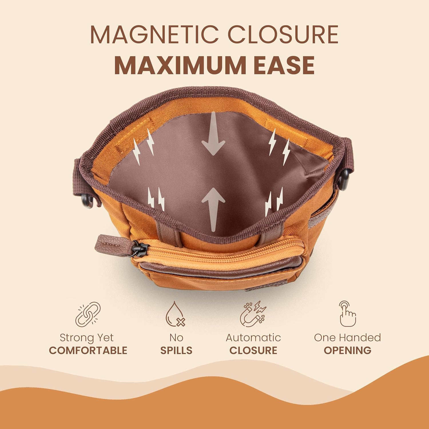 • 【EFFORTLESS ONE-HANDED ACCESS】 - The magnetic closure of this puppy treat pouch ensures fast access to treats, allowing you to reward your dog effortlessly during training sessions or walks without breaking the flow.