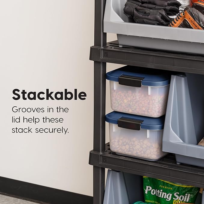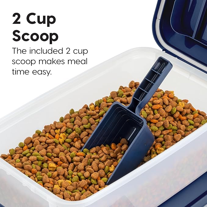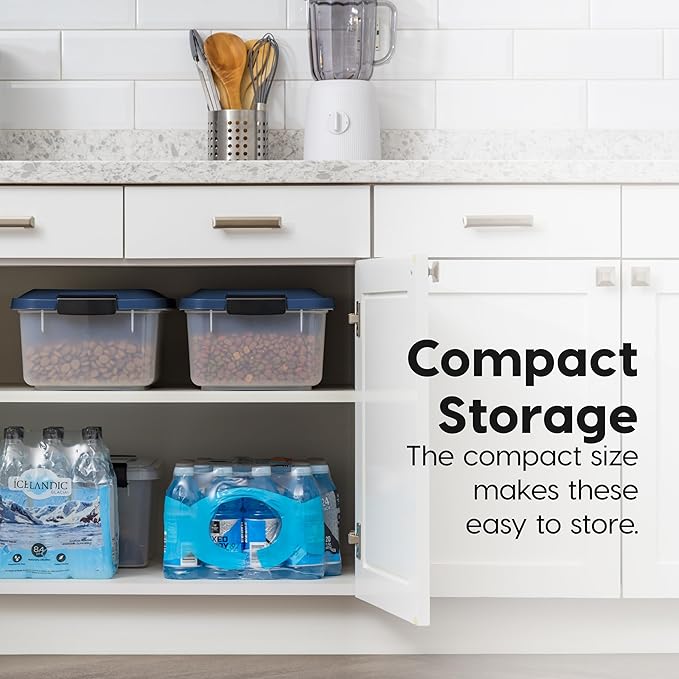 IRIS USA WeatherPro Airtight Pet Food Storage Container, Up to 14 lbs, Dog Cat Bird and Other Pet Food Storage Bin Keep Pests Out Translucent Body BPA Free Stackable, 2 Pack, Navy
