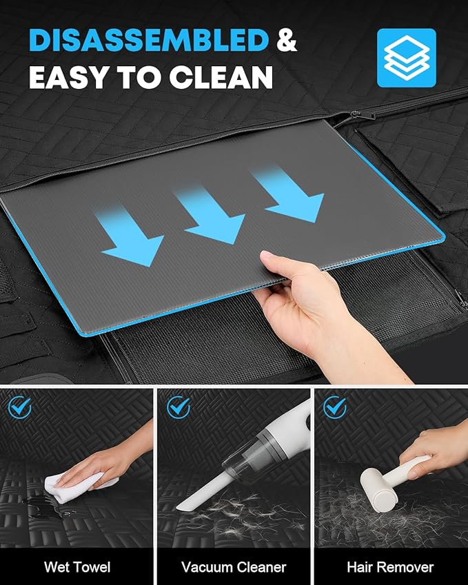 - EASY TO INSTALL & CLEAN - It only takes seconds to remove or install the rear seat protector for dogs. Easy to clean with a damp cloth or vacuum. The perfect gift for pet lovers, fitting most cars, crossovers, SUVs, and small trucks.