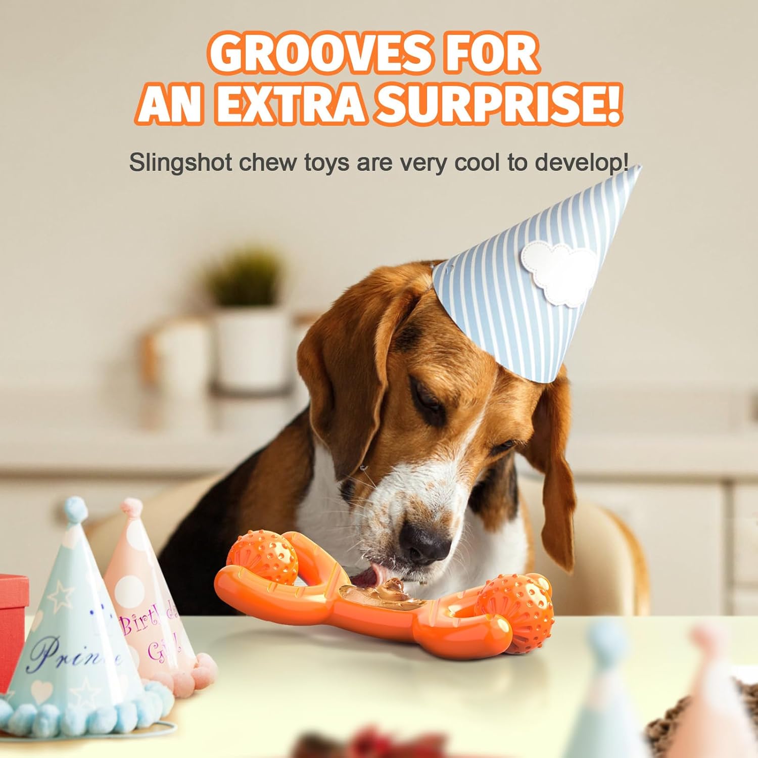 - TREAT-FILLED CHEW TOY FOR MAXIMUM FUN - Grooves for An Extra Surprise!Stuff some your dog's favorite paste treats such as peanut butter,cheese, wet foods, and other spreadable treats a long-lasting and engaging session! It’s freezer safe and easy washable !it’s a great choice for dog toys to keep them busy and tough dog toys for aggressive chewers.