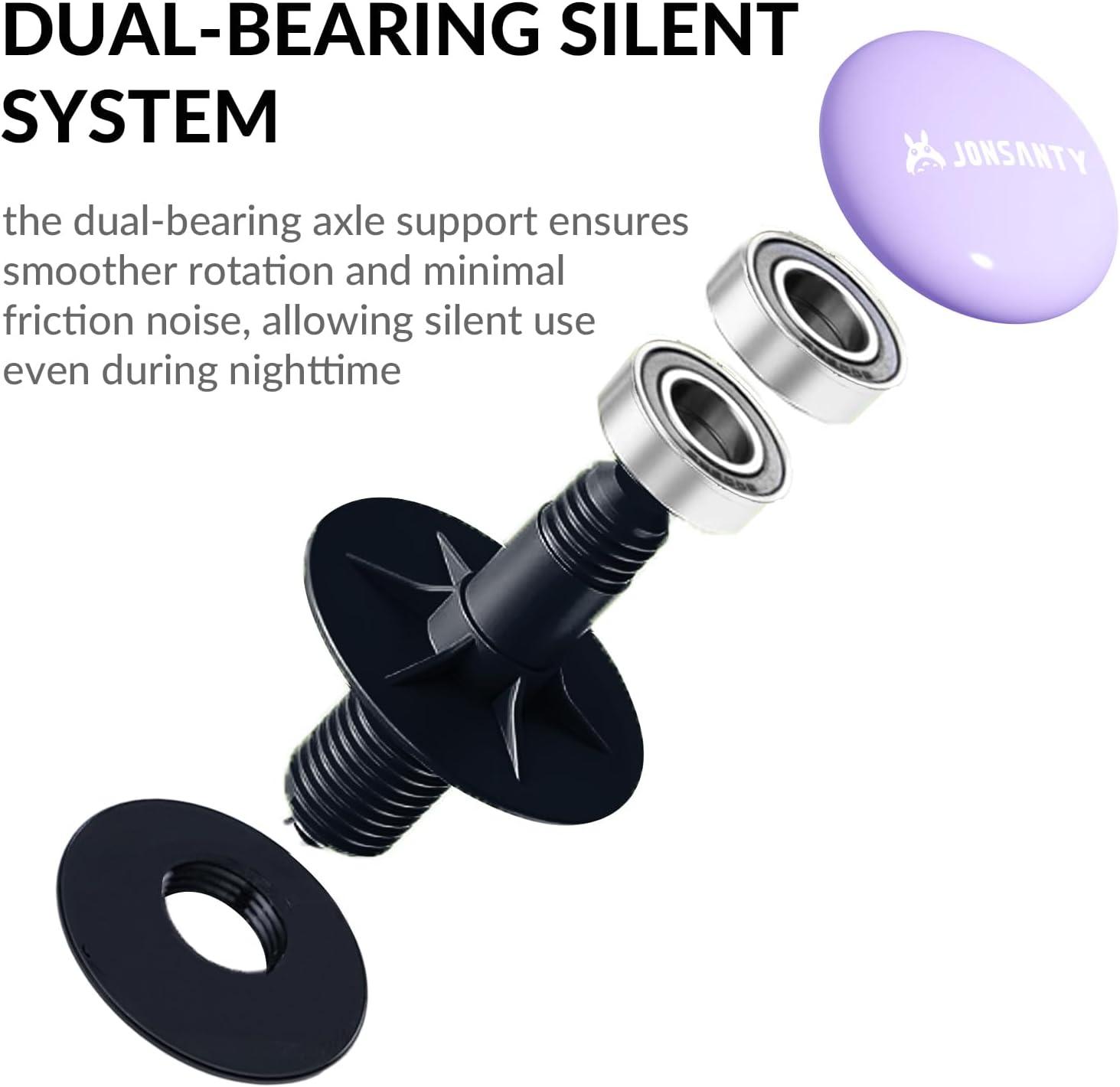 - 【Dual-Bearing Silent System】The dual-bearing axle support ensures smoother rotation compared to traditional single-bearing designs, with minimal friction noise for undisturbed use even during nighttime.
