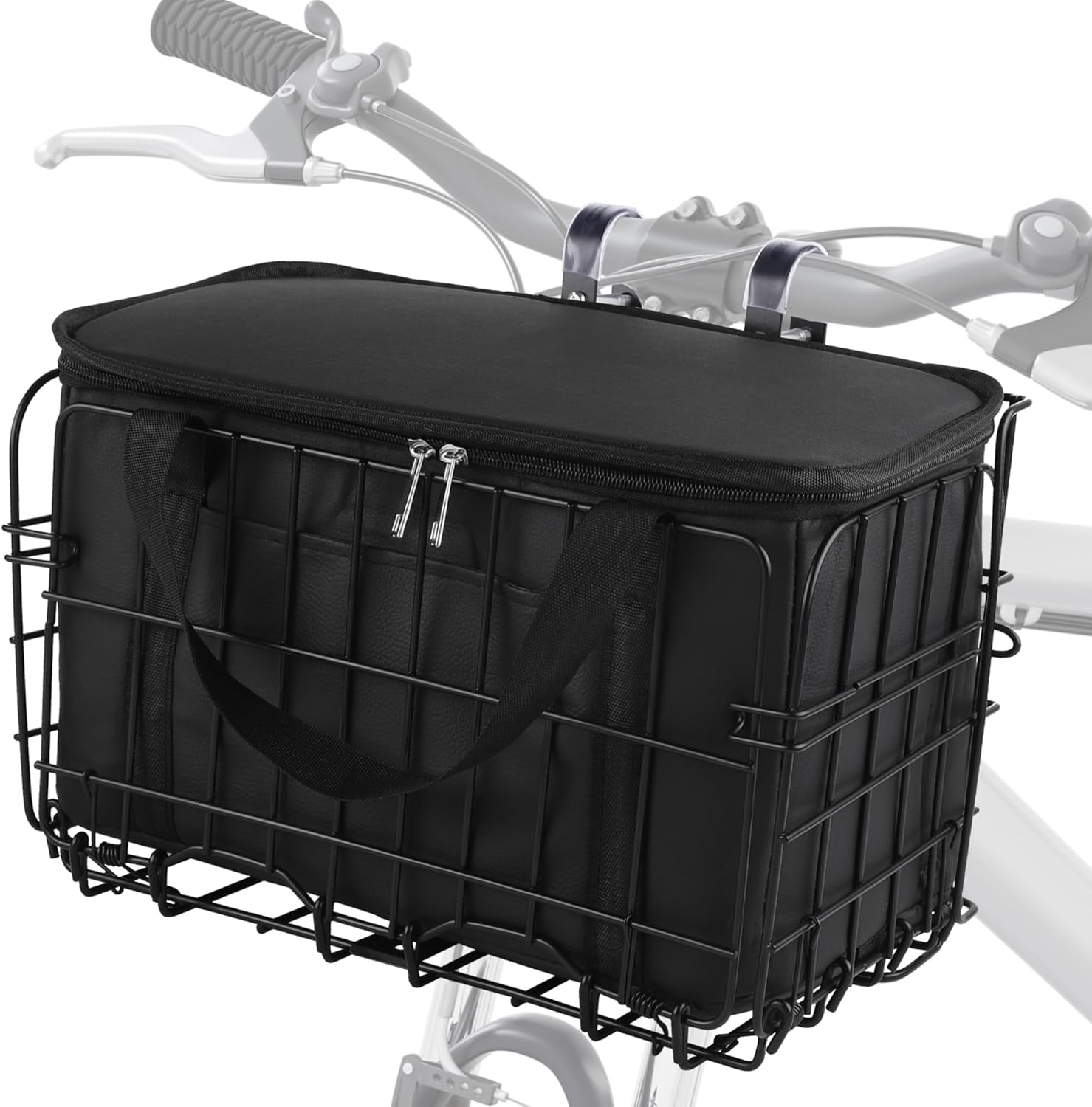 Aodaer Bike Basket with Removable Liner Bag Cargo Net Large Folding Bike Basket Quick Release Metal Ebike Basket Bicycle Storage Basket for Carrying Fruit & Grocery Pets Dogs