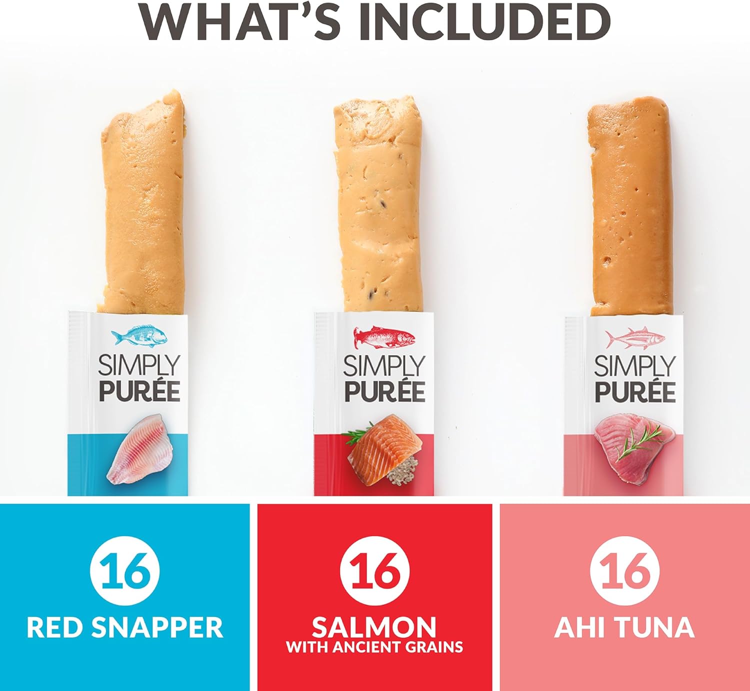 Simply Puree Variety Tub for Cats | 48 Individual Servings of All-Natural, High-Protein Puree Treats | Includes Multiple Flavors | Grain-Free, No Artificial Additives, Smooth Texture