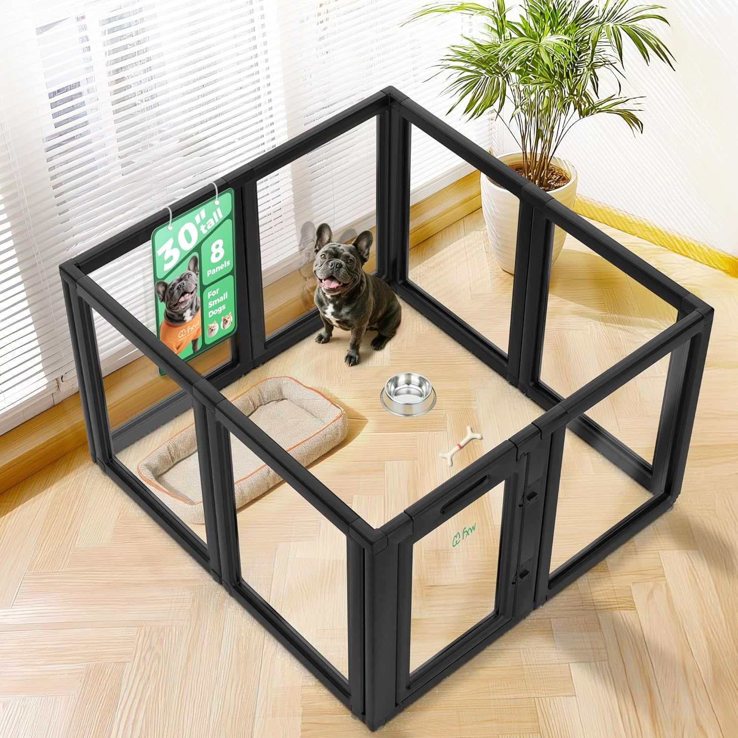 FXW AuraSpace Acrylic Indoor Unleashed Dog Playpen for Small and Medium Dogs, 30 Inch, 8 Panels, Black
