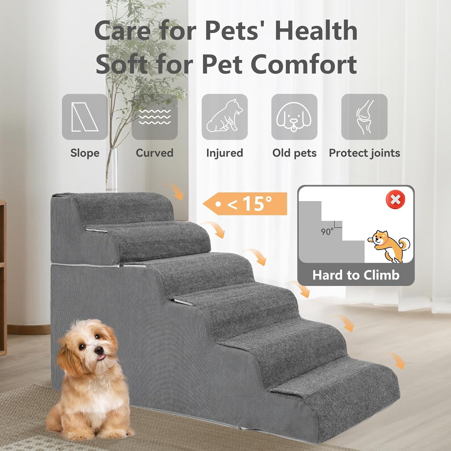 - Premium Carpet for Paws and Play: Our dog ramp is covered by 370g carpet fabric on each slope,which is not only durable but also adds extra traction for your pet’s paws, preventing slips during their climb. Paired with high-density 25D memory foam that maintains its shape with a 98%+ rebound rate, these steps are a luxurious haven for your furry friend
