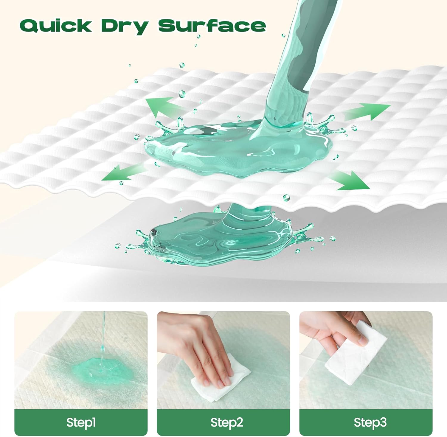 - 🦴【Thick & Leak-Proof Design】The Potty Pads are thicker than others and more efficient at preventing pet urine damage to floors and carpets. They absorb liquid faster, holding up to 10 cups. The upgraded PE film is highly leak-proof, tear-resistant, and durable