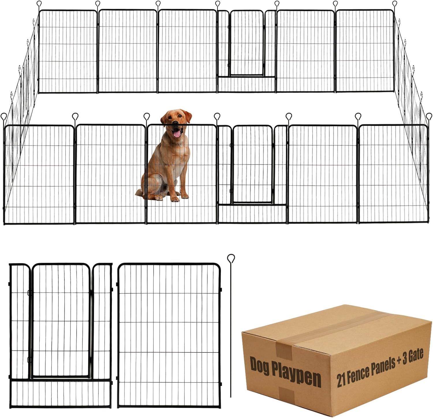 Dog Playpen,24 32 40 48 in(H) Pet Fence Outdoor for Rv Camping,Garden Fence Large Animal Barrie for Yard,11Ft(L)-56Ft(L) Black Metal Temporary Fencing