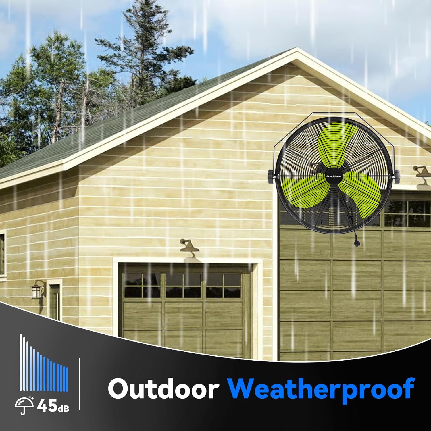 - šš¢š š” ššš„šØšš¢šš² šš¢š« š š„šØš° - Equipped with 3 adjustable wind speeds, low (2100CFM), medium (2300CFM) and high (2600 CFM), this wall fan utilizes the raw power of the pure copper motor to provide hurricane-like airflow to perfect for outdoor patio, garage, warehouse, humidity environments, dust