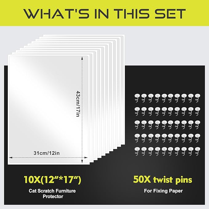 - [Large & Customizable Coverage] Each set includes 6 extra-large transparent sheets that can be cut to fit any furniture size. Choose from multiple pack options: 6, 10, 12, or 18 sheets for customized protection. Perfect for sofas, doors, couches, and more, offering maximum protection in high-risk scratching areas.