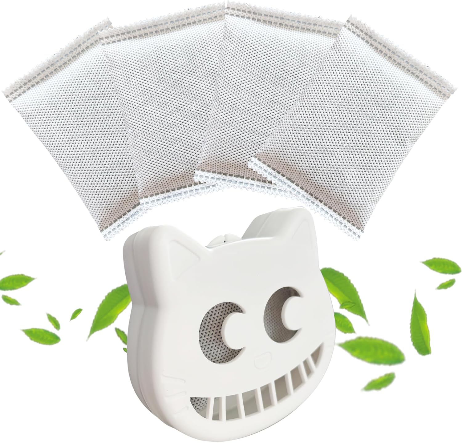 Unscented Cat Litter Box Deodorizer Kit Stick-On Activated Carbon Odor Eliminators Compatible with most manual and automatic litter boxes (4 Refills+ 1 Box) (White, Unscented)