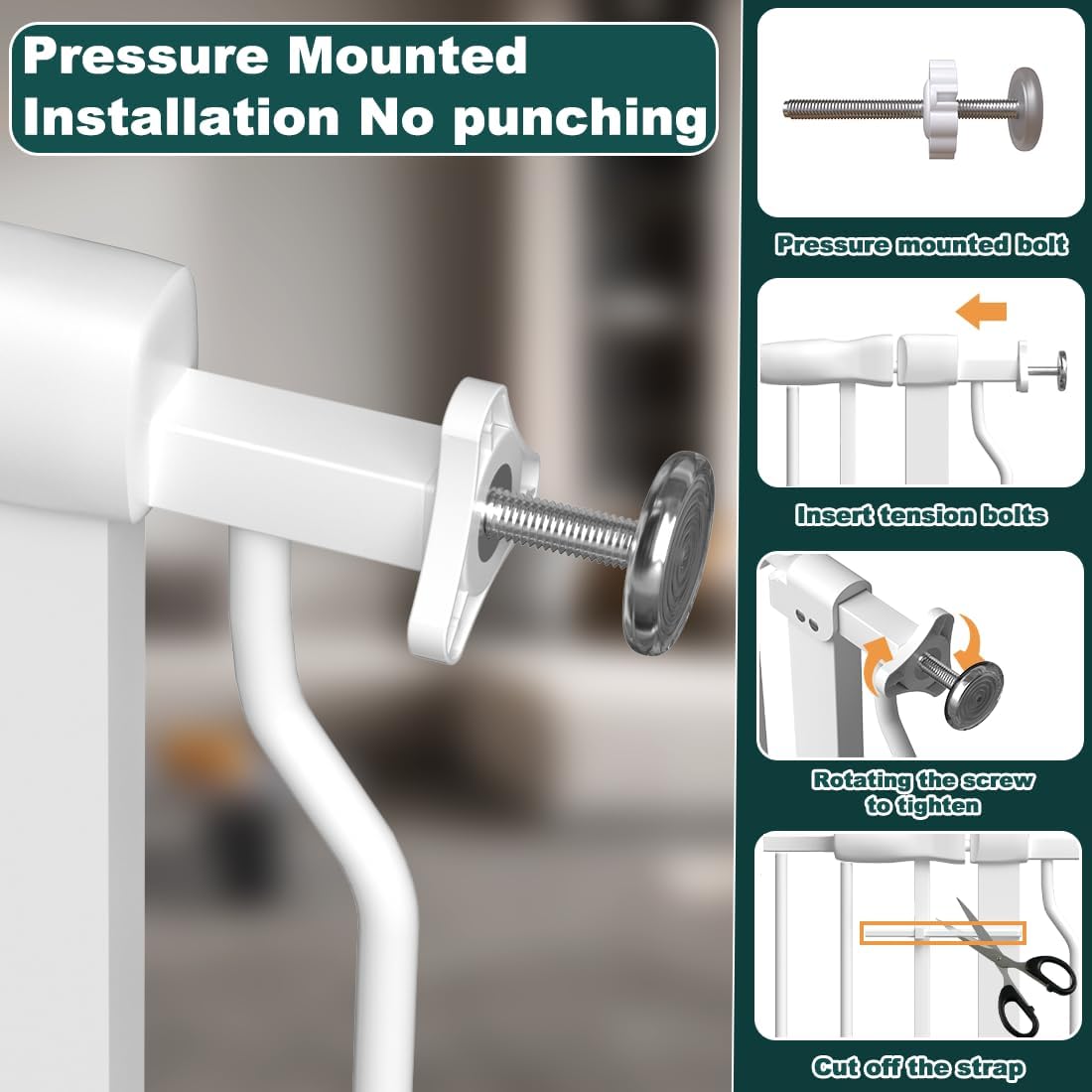 - 【GREAT FOR MOST OPENINGS】Our white gate is suitable for different doors! Choose for openings between 25"-76.37". We have different baby gates sizes,it doesn't include all extensions,the extension which you received denpends on your door opening.Whether your dooway is wide or narrow ,you can find the suitable baby gate or pet gate.And our large walk thru gate makes it easier to walk when holding the baby.