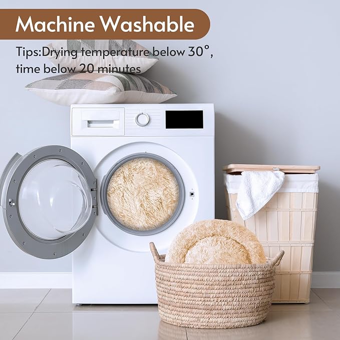 - Premium Material: The donut pet bed is featuring a plush faux fur exterior with polyester fiber fill interior, this cozy canine nest combines tactile comfort with structured cushioning