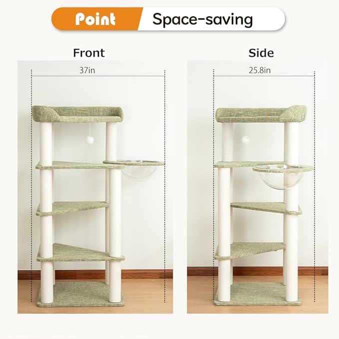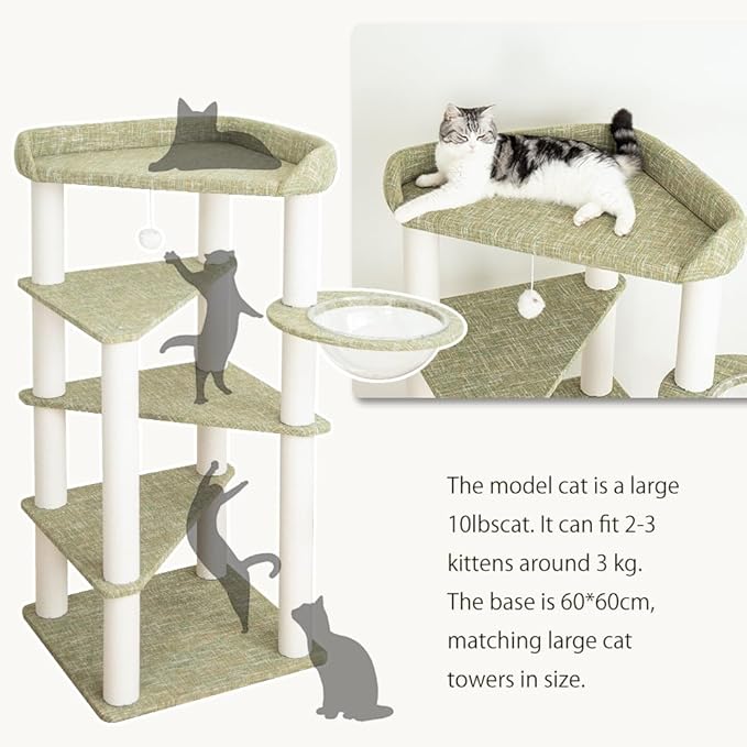 - Stable & Durable Cat Condo: Made with thickened base and sturdy posts, this cat tower for large cats offers stability during climbing and play. Soft fabric and high-quality board ensure long-term use.