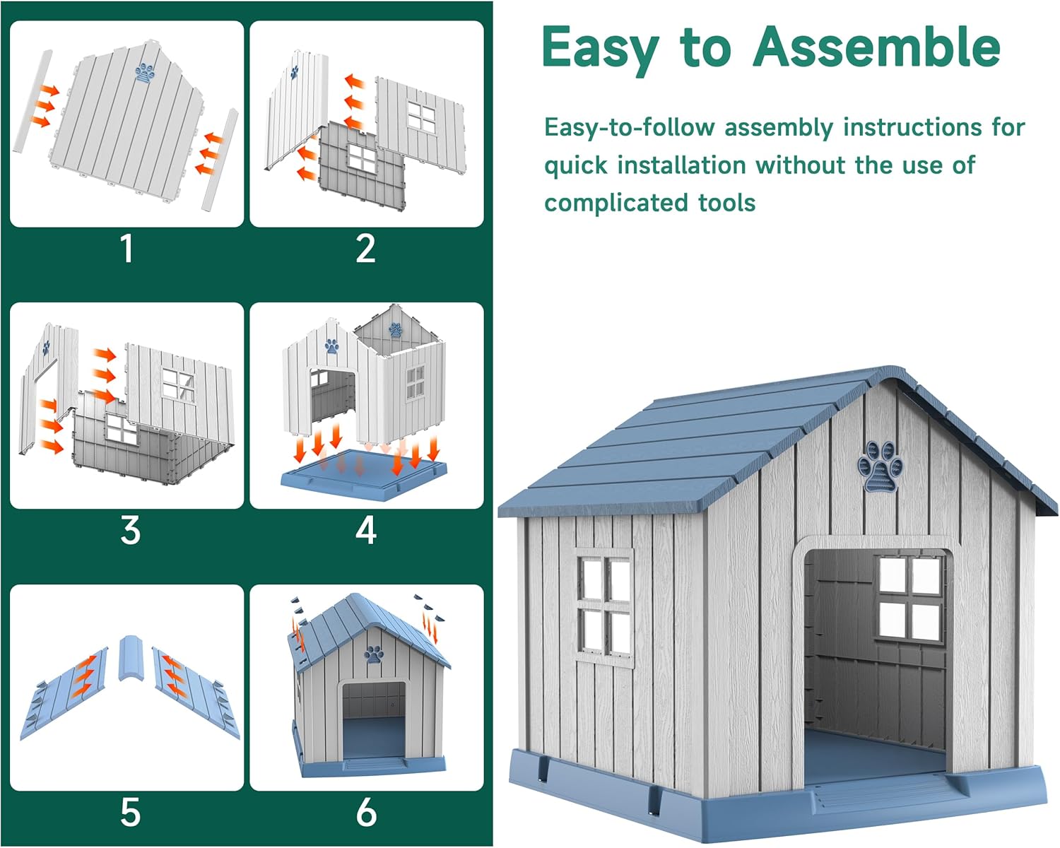 - Superior PP Material: Crafted from high-quality PP material, this dog house is waterproof. This ensures a clean, dry, and safe living environment for your furry friends all year round.