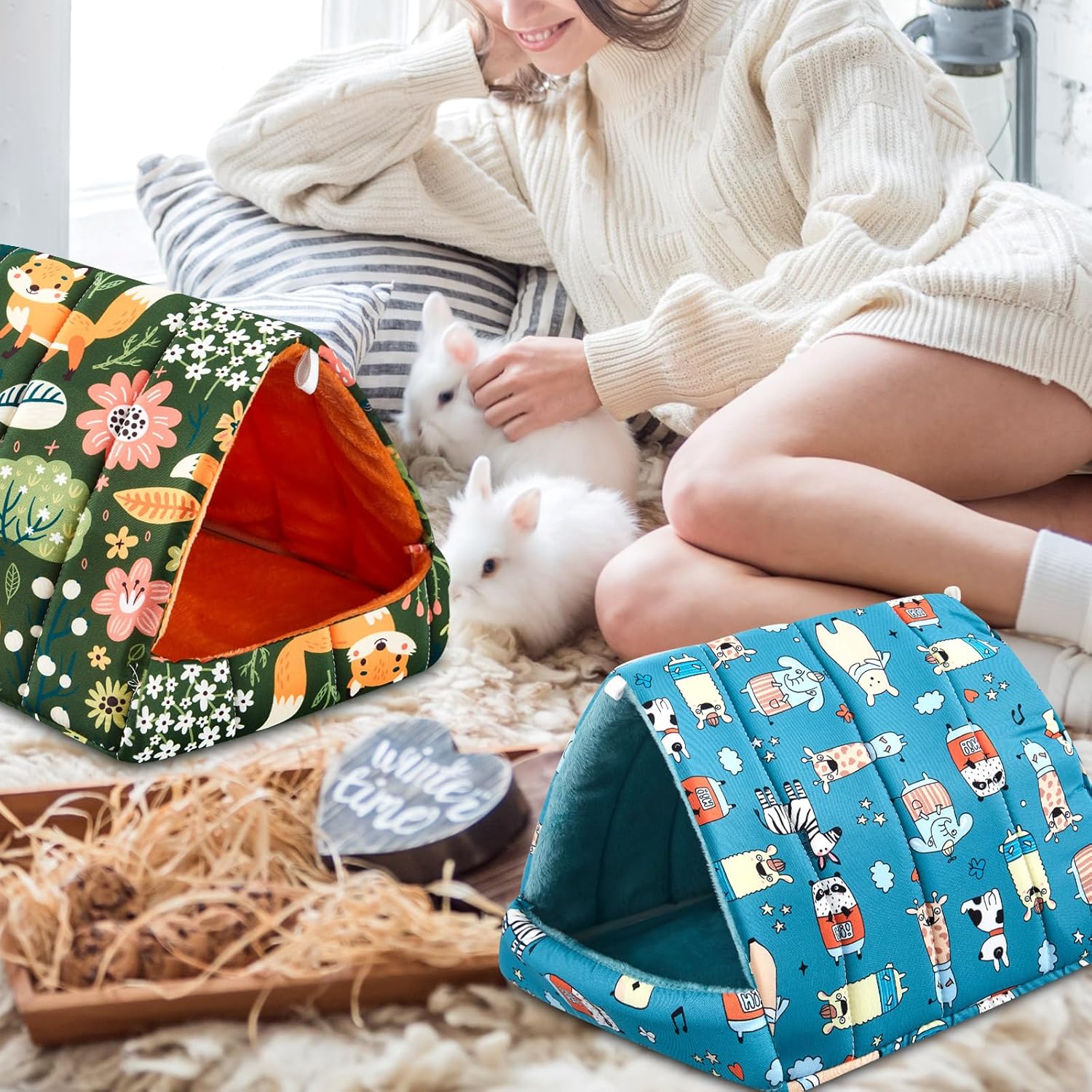 - Comfort, Warmth and Security: your small pet's comfort is our priority; Our colorful guinea pig bed house is designed to provide an inviting and secure environment; The wrapped entrance provides your sensitive pet with a sense of security, and the ultra-soft PP cotton material ensures warmth and coziness; Ideal for rest, play, and sleep, this shelter is a little heaven for your furry friend