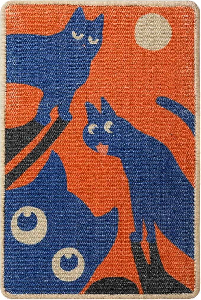 3-in-1 Sisal Cat Scratcher Mat 23.6x15.7'' Protects Carpet Couch & Furniture with Sticker Tape, Floor & Wall Cat Scratching Pad, Anti-Slip, Durable for Indoor Outdoor Cats (Vivid Orange)