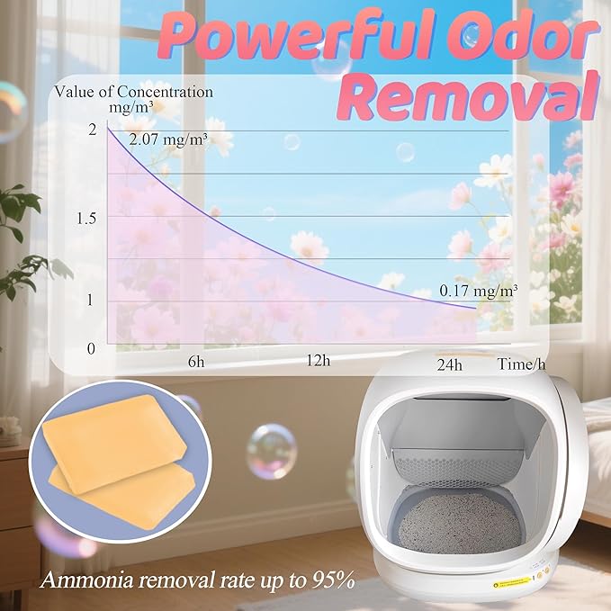 - Powerful Odor Elimination: This pet odor eliminator can effectively remove odors, ammonia removal rate up to 95%, ensuring a fresher living environment for you and your pets