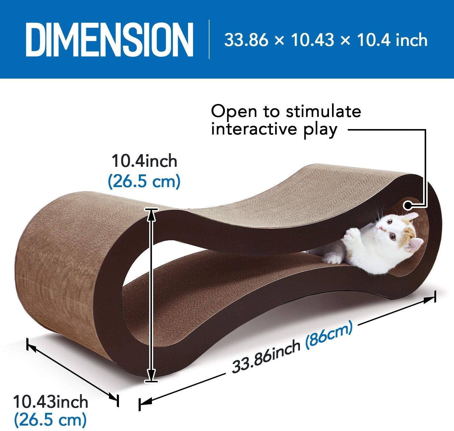 - [Rest & Play]: Lounge-shaped corrugated cardboard scratcher is a perfect place for rest & play. Apart from scratching it, cats treats it like bed and lie on it.