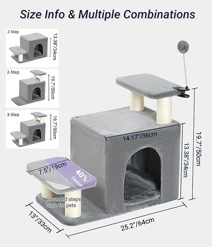 - 3-in-1 Multi-Function: This cat stair combines a cozy condo, sisal scratching posts, and a playful spring toy, offering climbing, scratching, and resting spaces in one compact unit. Perfect for helping cats reach high beds, sofas, or window perches while reducing joint strain.