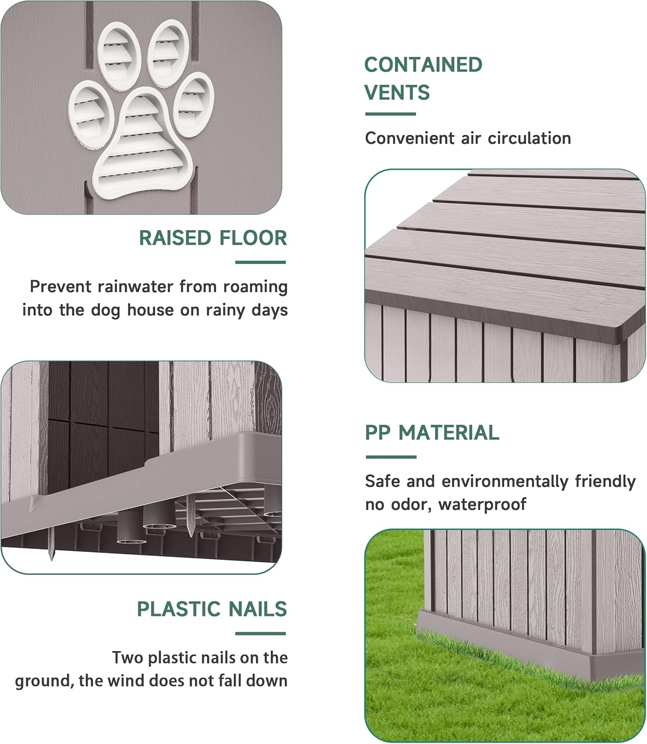 Vixzen Large Outdoor Dog House,Durable Water Resistant Resin Dog House,Doghouse for Small to Large Dogs Indoor or Outside,with Openable Windows and Elevated Floor,Gray