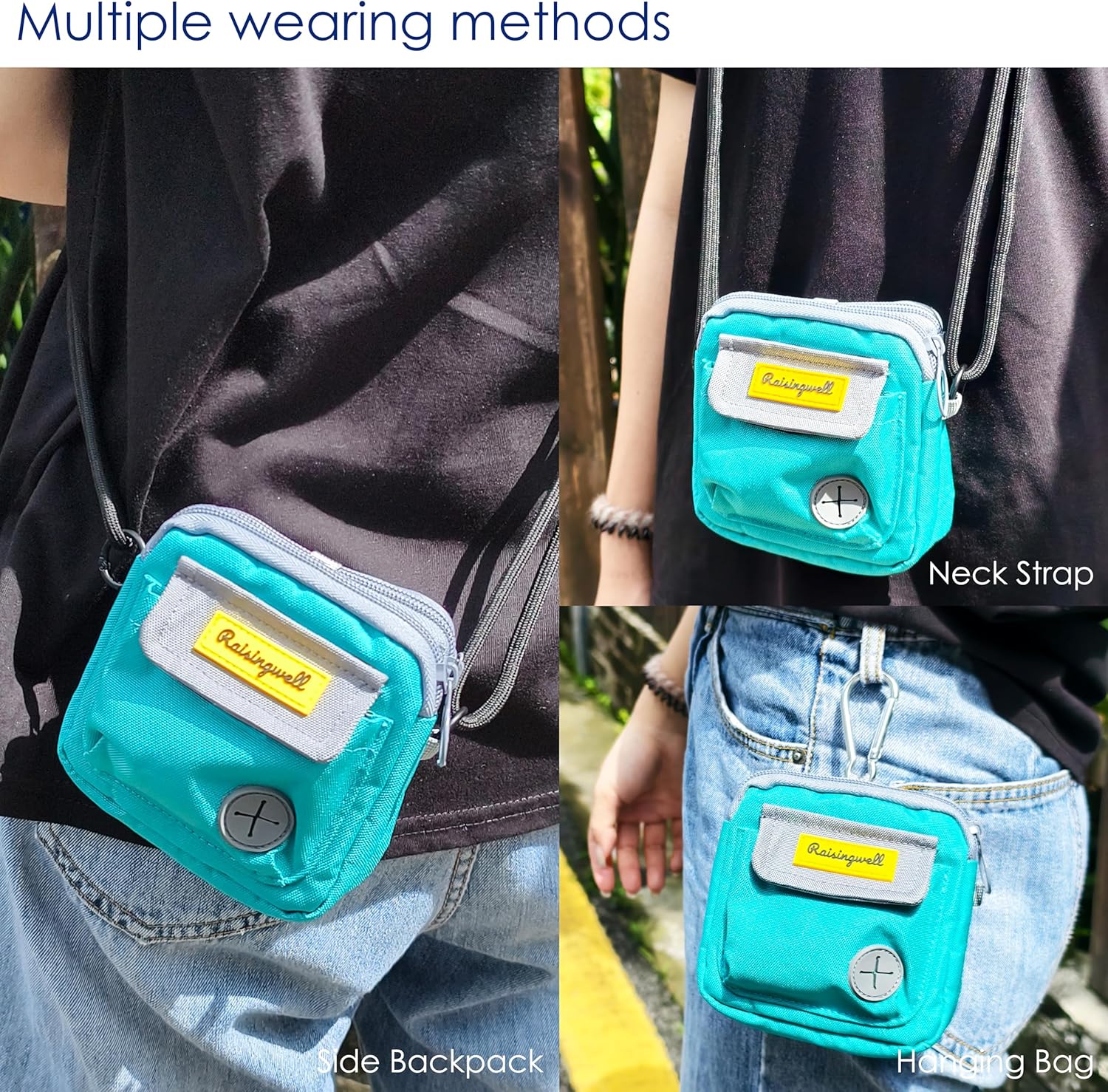 - 3、Durable Tech Material: Raisingwell's dog treat training pouchis made from durable, washable, and non-toxic fabric. Notably, its waterproof lining solves the problem of difficult-to-clean interiors of training bags.