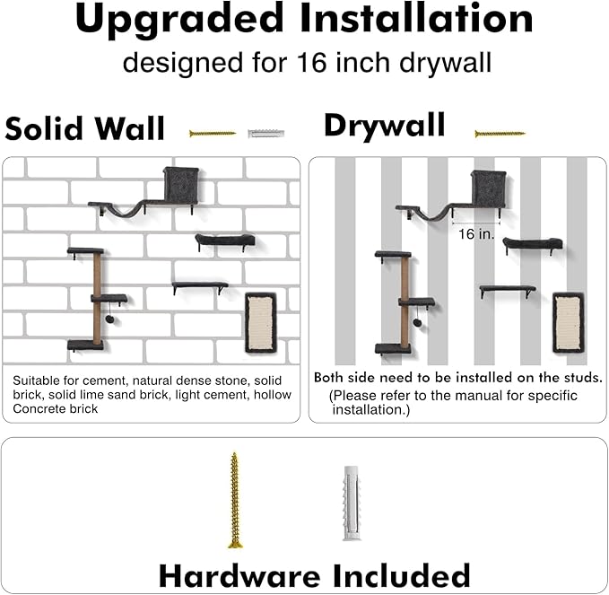 - Effortless Setup, Instant Cat Paradise! Our ingenious multi-functional cat climbing shelves is designed for victory. Imagine: in minutes, not hours, you'll be transforming that blank wall into a thrilling cat climbing wall systems. Clear instructions, smart design, and frustration-free parts mean anyone can be the hero who builds the ultimate cat playground. Whether it's a sun-drenched balcony lookout, a cozy corner in your bedroom retreat, the heart of the living room action, floating cat shelves seamlessly adapts – turning your entire home into their personal, vertical kingdom.
