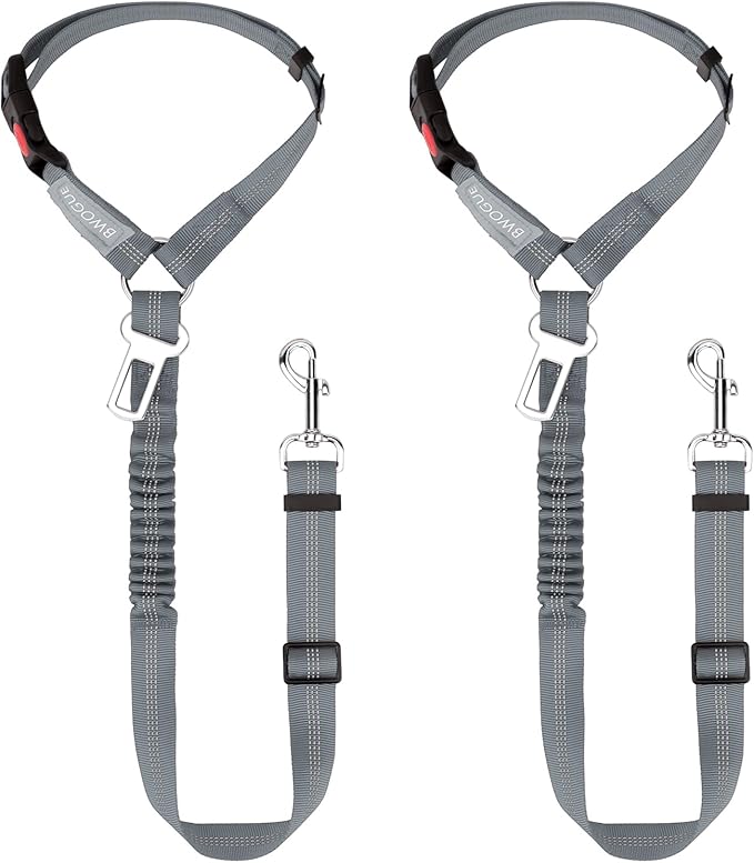 BWOGUE 2 Piece Dog Seat Belt for Car with Elastic Bungee Buffer Safety Seatbelt Car Headrest Restraint Wear Adjustable Metal Buckle Harness in Vehicle Travel for Pet