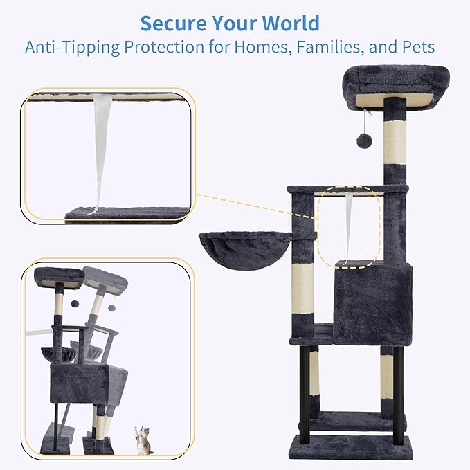 - Easy to Assemble:Our cat furniture comes with illustrated instructions and the necessary toolkit, and can be easily assembled in just a couple minutes. If you have any questions about our cat towers, please feel free to contact us!