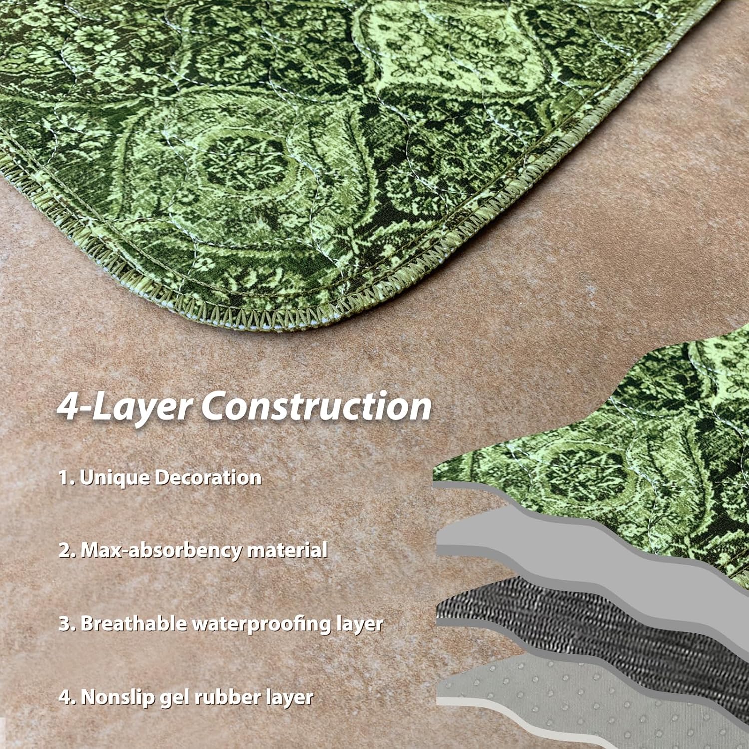 nunubaby Washable Pee Pads for Dogs, Stylish, Non-Slip and Leak-Proof Pee Pads. Reusable Potty Pads for Dogs for Crates and Floors.(Green/Multi, 72" x72")