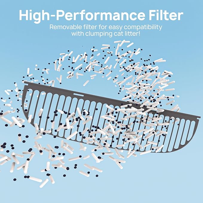 - Hassle-Free Installation & Cleaning: Setting up this litter box is a breeze with its user-friendly snap-on design. First-time users can easily complete the assembly in just minutes. The removable liner and filter make daily maintenance quick and efficient, saving you time on cleaning.
