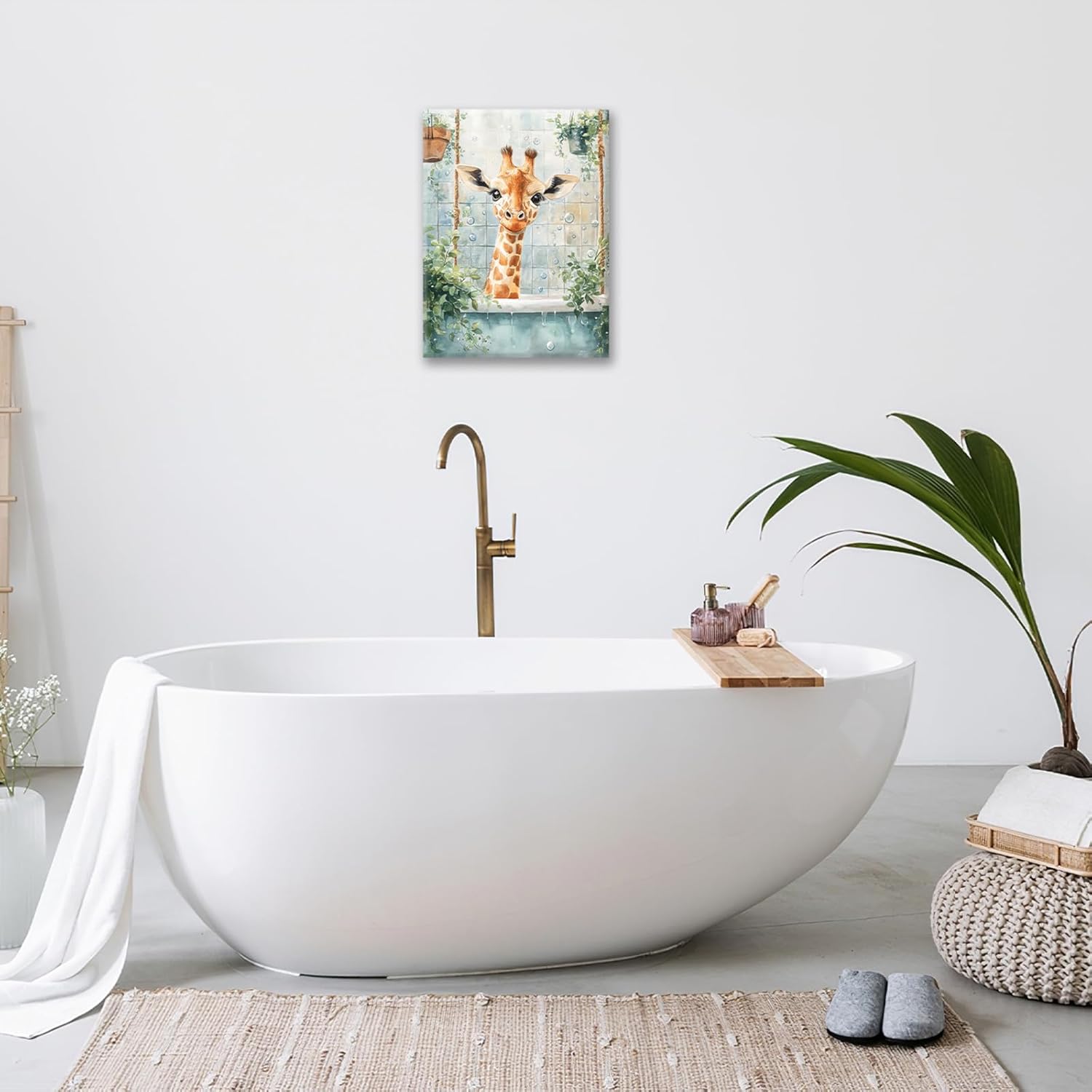 Bathroom Funny Giraffe Pictures Wall Art, Watercolor Giraffe Bathroom Wall Decor, Animal Framed Painting Canvas Artwork for Living Room Decorations 20"L x 16"W