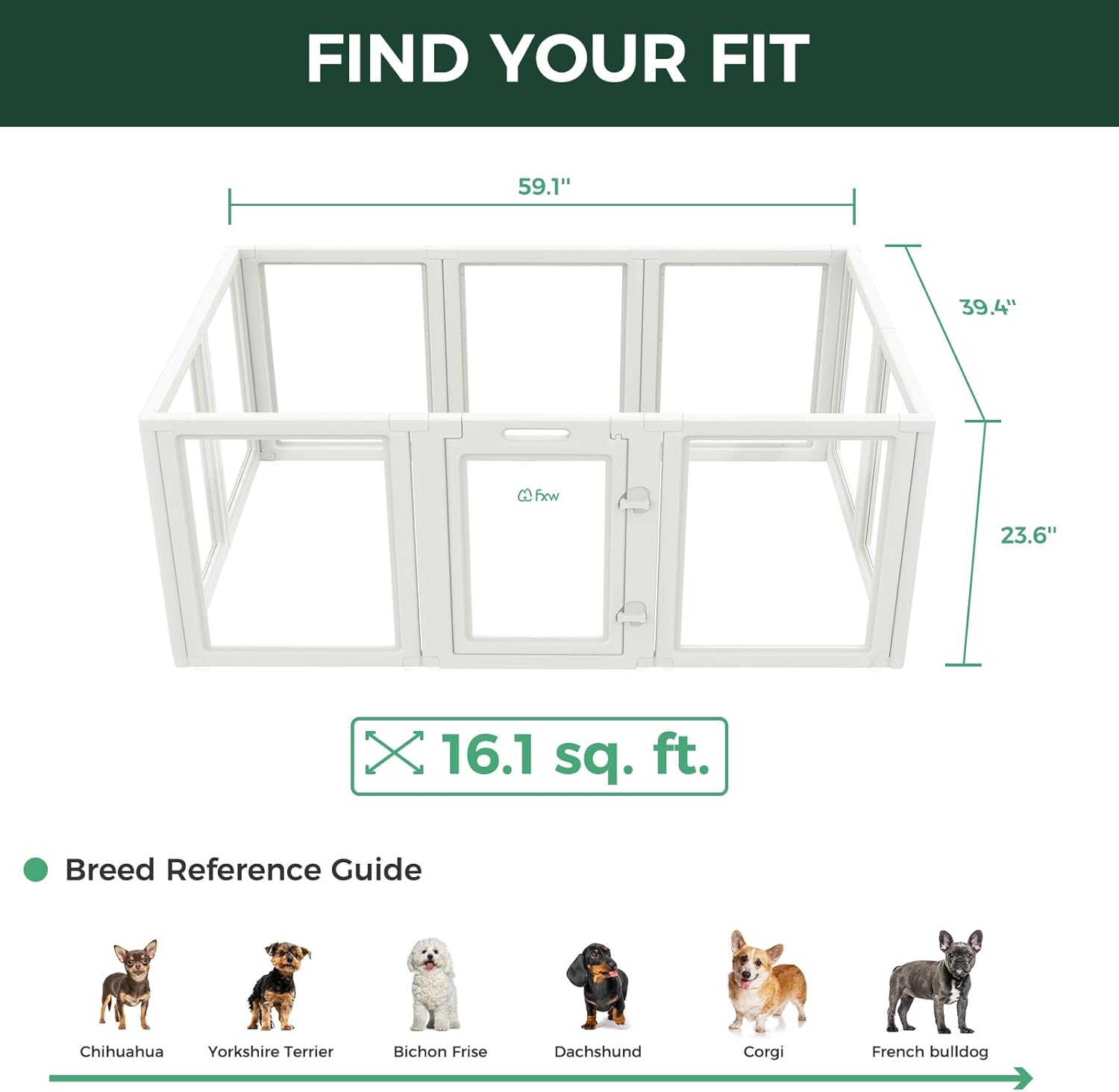 FXW AuraSpace Acrylic Indoor Unleashed Dog Playpen for Puppies and Small Dogs, 24 Inch, 10 Panels, White