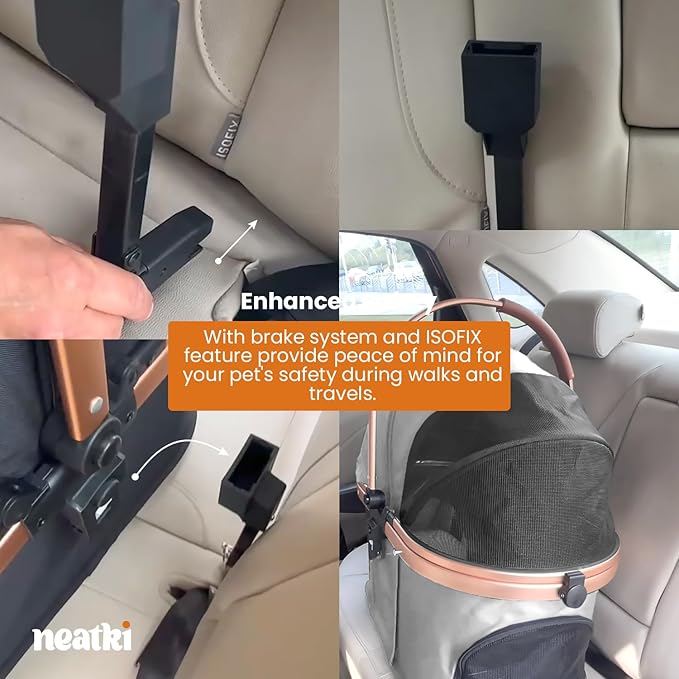 - Enhanced Safety – Equipped with a reliable brake system, this stroller keeps your pet secure and gives you peace of mind during walks and outings. Now featuring ISOFIX for easy vehicle installation, ensuring a safer, stress-free travels with your furry friend.