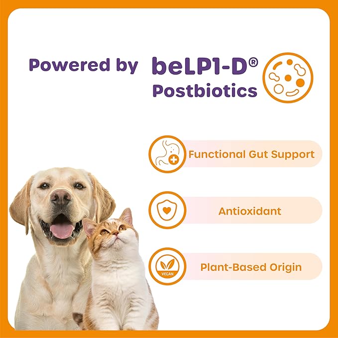 - MULTIVITAMINS & VEGAN POSTBIOTICS FOR DAILY WELLNESS Fortified with Vitamin B Complex, C, and E—plus beLP1-D postbiotics, a vegan digestive support ingredient that helps maintain gut balance, nutrient absorption, and immune system health. Ideal for all breeds and life stages, including seniors and picky eaters.