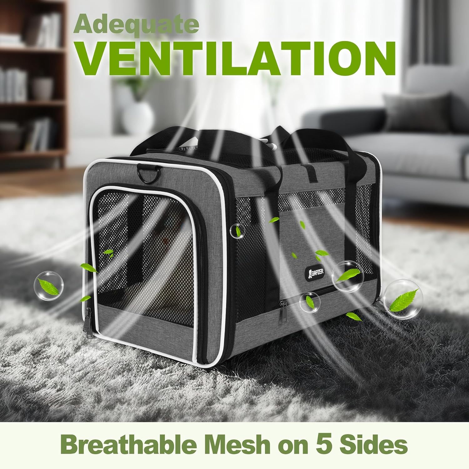 Cat Carrier 18x11x11 Top Load Soft Pet Travel Bag Over 15 lbs, Collapsible Small Dog Puppy Crate 10 Pounds, Small Animal Rabbit Kennel Carrying Case, Kitten Mesh Cage Medium Cat Under 25 Grey