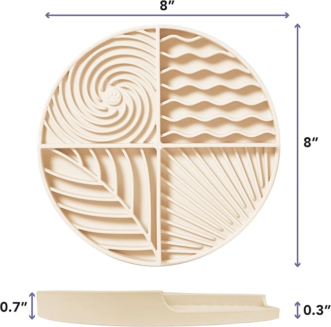 Awoo Paradise - Silicone Dog & Cat Lick Mat and Slow Feeder with Suction Cups - Non-Slip, Dishwasher Safe Pet Dish - Extends Mealtime for Fast Eaters and Reduces Anxiety - for Wet & Dry Food (Almond)
